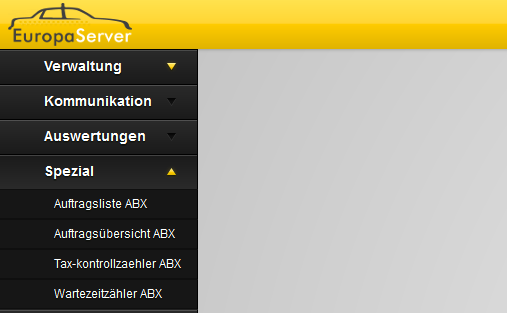 In diesem Bereich befinden sich frei definierbare Statistikabfragen. Diese Abfragen werden auf Wunsch von der Zentrale im fms eingerichtet und hier zur Verfügung gestellt. Da dieser Bereich dynamisch ist und je nach Einrichtung unterschiedliche Menüpunkte enthalten kann, wird hier exemplarisch die Auftragsliste ABX beschrieben. Die Suchfiltervorgabe ist meist identisch.